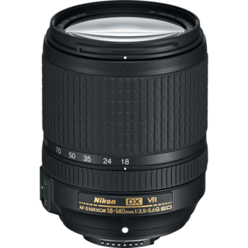 - عدسة AF-S DX مقاس 18-140 مم ببؤرة f / 3.5-5.6G ED VR