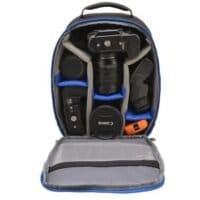 قم بتخزين وحماية الكاميرا الرقمية ذات العدسة الأحادية العاكسة (DSLR) باستخدام عدستين وإكسسوارات متنوعة باللون الأسود