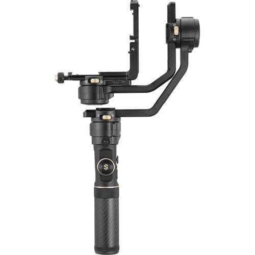 مقبض الجيمبال مصنوع من ألياف الكربون ليكون المثبت أخف وزناً في يدك. تم تحسين عجلة التحكم المدمجة على جانب المقبض للسماح بتأخير منخفض للغاية عند التحكم في محرك العدسة الإضافي، الذي يباع بشكل منفصل، حتى تتمكن من إجراء التعديلات بدقة أكبر. (عند استخدام كل من محرك التركيز ومحرك الزوم، يمكنك ضبط عجلة التحكم للتحكم في واحد منهما). في الجزء السفلي من المقبض يوجد خيط 1/4″-20 يسمح لك بتركيب الحامل الثلاثي الصغير المرفق ليستخدم كحامل أو كامتداد يمكن حمله باليد الأخرى لمزيد من التحكم.