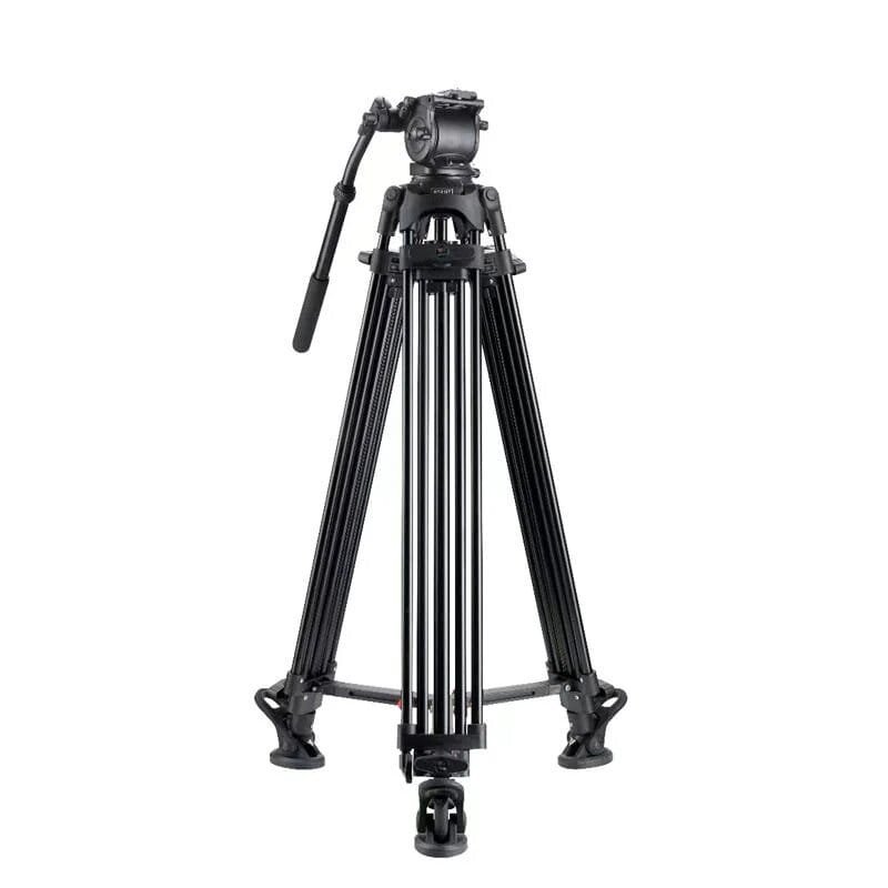 - حامل ثلاثي احترافي من الألومنيوم بثلاثة أقسام: بتصميم أرجل مزدوجة لزيادة الاستقرار وتقليل الاهتزاز.