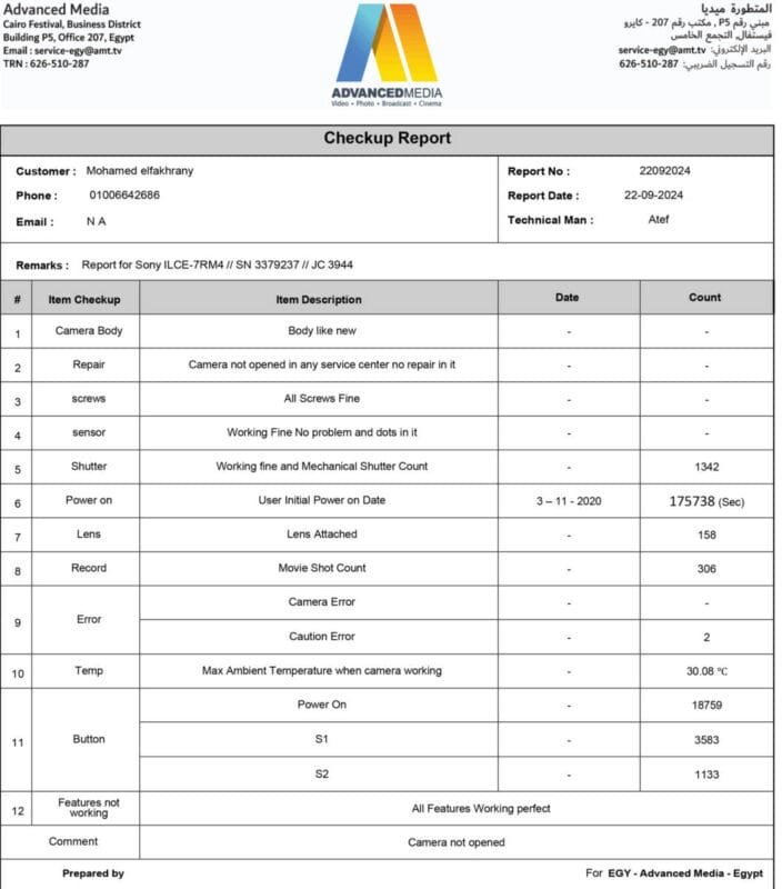 يمكنك الاطلاع على التقرير الرسمي الصادر من مركز خدمة سوني المعتمد في مصر