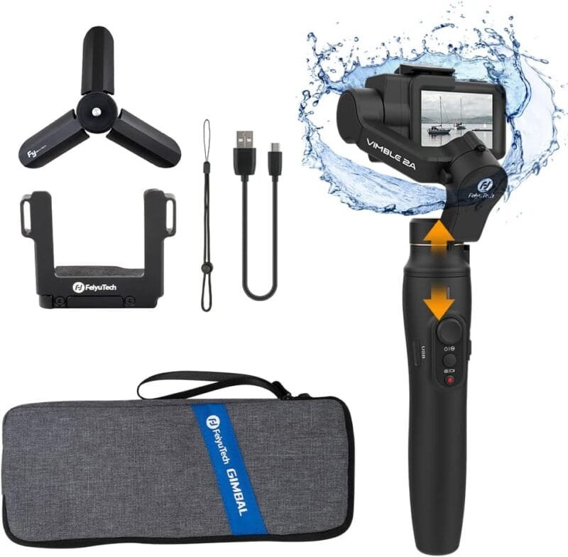 فييوتك فيمبل 2A – مثبت جيمبال ثلاثي المحاور مقاوم للرذاذ مع ذراع تلسكوبي لـ GoPro Hero 8، 7، 6، 5، SJ CAM، YI 4K، Osmo Action Sport، مع تحكم بالاتصال عبر الواي فاي