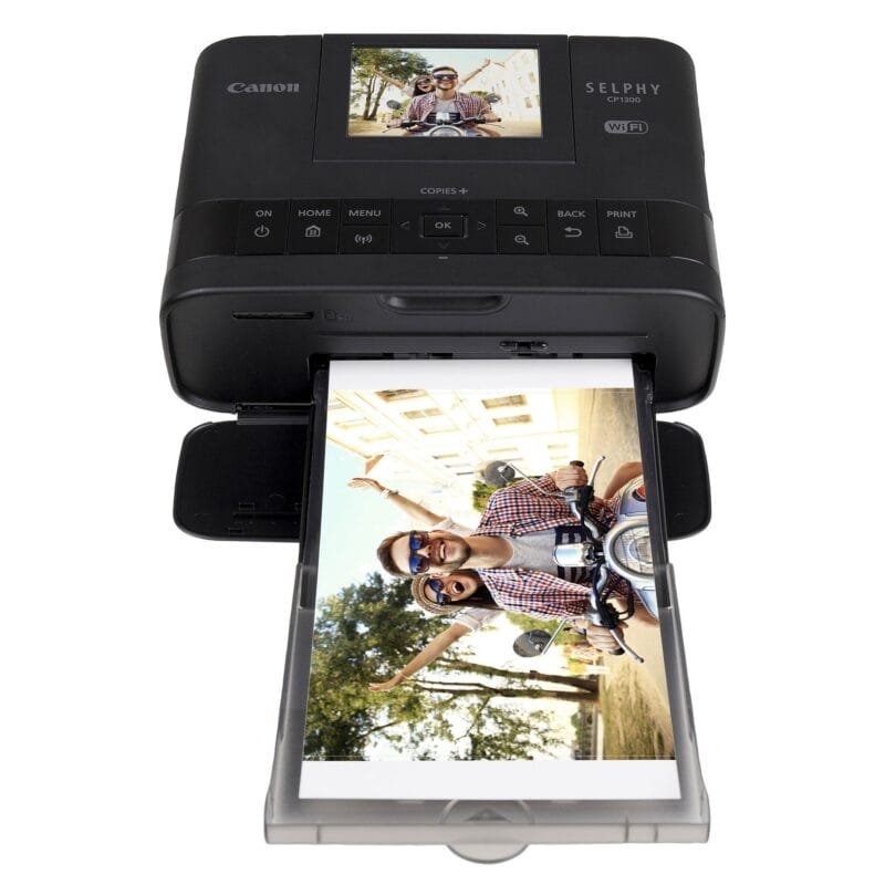 تُعد طابعة الصور اللاسلكية المدمجة SELPHY CP1300 من Canon الأنيقة والمحمولة مثالية لإنشاء مطبوعات فريدة من الأجهزة الذكية والكاميرات المتوافقة والمزيد.