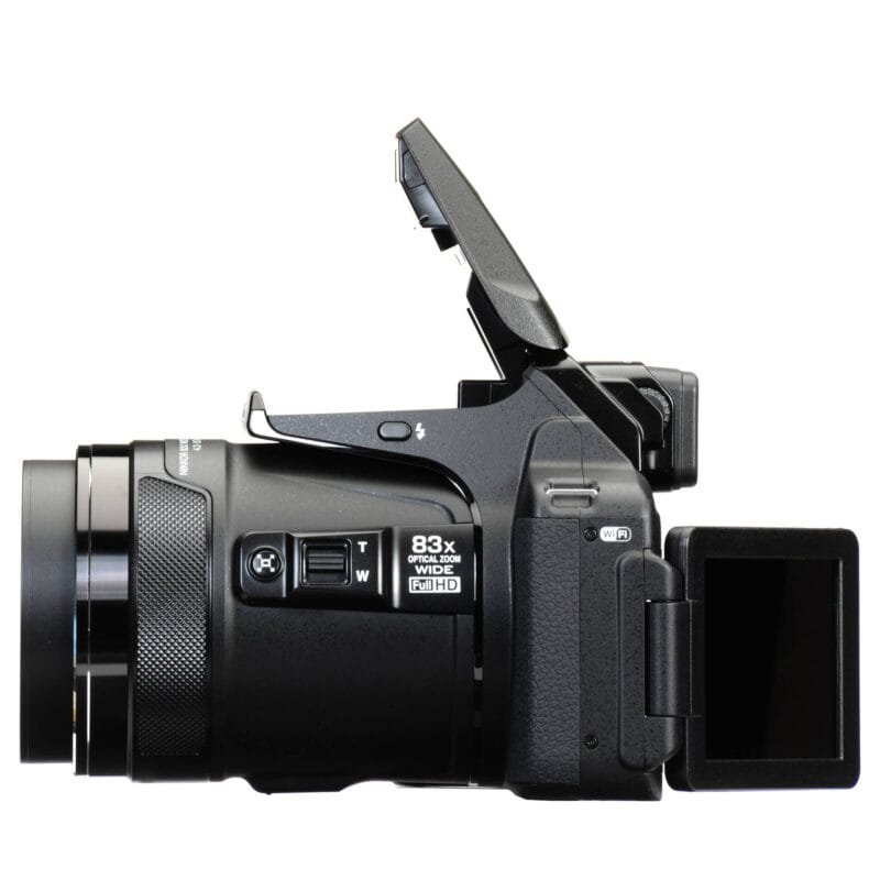 هذا مفيد لأنه يحافظ على الحجم صغيرًا – في الكاميرا ذات الإطار الكامل ، ستكون العدسة الحقيقية التي يبلغ حجمها 2000 مم بحجم سيارة صغيرة تقريبًا. ومع ذلك ، فإنه يضع أيضًا متطلبات عالية على جودة البصريات. لا يمكن أن يكون تحقيق تركيز بؤري حاد عبر نطاق زوم 83x الهائل أمرًا سهلاً.