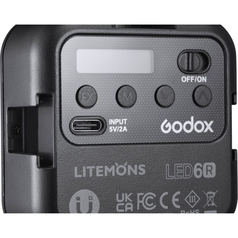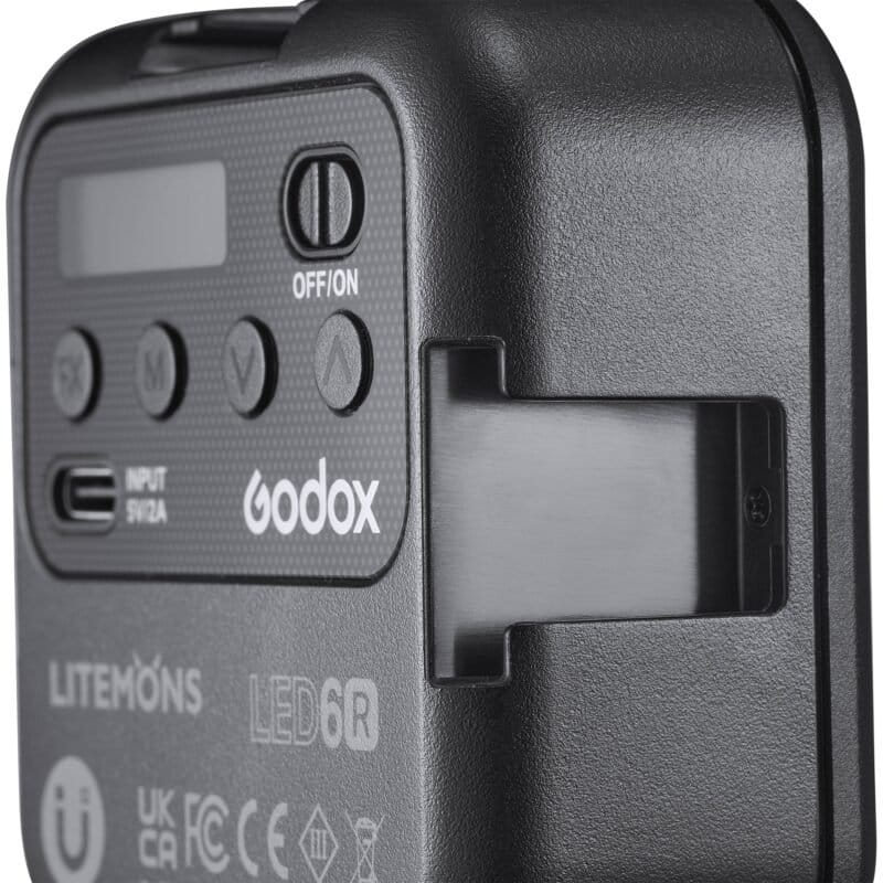 يتميز بحجم صغير ، وإمكانيات تركيب مرنة ، وإخراج متغير لدرجة حرارة اللون ، فإن  مصباح الفيديو LED بحجم الجيب Litemons RGB  من  Godox  هو مصباح LED على الكاميرا يمكنك أخذه وتركيبه في أي مكان تقريبًا لإضافة القدر المناسب من الضوء أو اللون إلى لقطتك سواء كنت تنشئ قصصًا أو تدوين فيديو أو تضيء حفلة أو تقوم بتصوير منتج. يمكن التبديل بين إخراج RGB لاختيار 36000 لون ووضع CCT لدرجات حرارة لون متغيرة بين 3200 و 6500 كلفن ، هذا الضوء متعدد الاستخدامات قابل للتعتيم من 0 إلى 100٪ سطوع. تعرض لك شاشة العرض المضمنة الوضع ، بالإضافة إلى السطوع وطاقة البطارية المتبقية.
