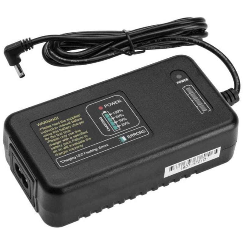 يقبل شاحن بطارية Godox الخاص برأس الفلاش AD400Pro 100 إلى 240 فولت تيار متردد ويشحن بطارية أيون الليتيوم الخاصة بالرأس بالكامل في غضون ساعتين.