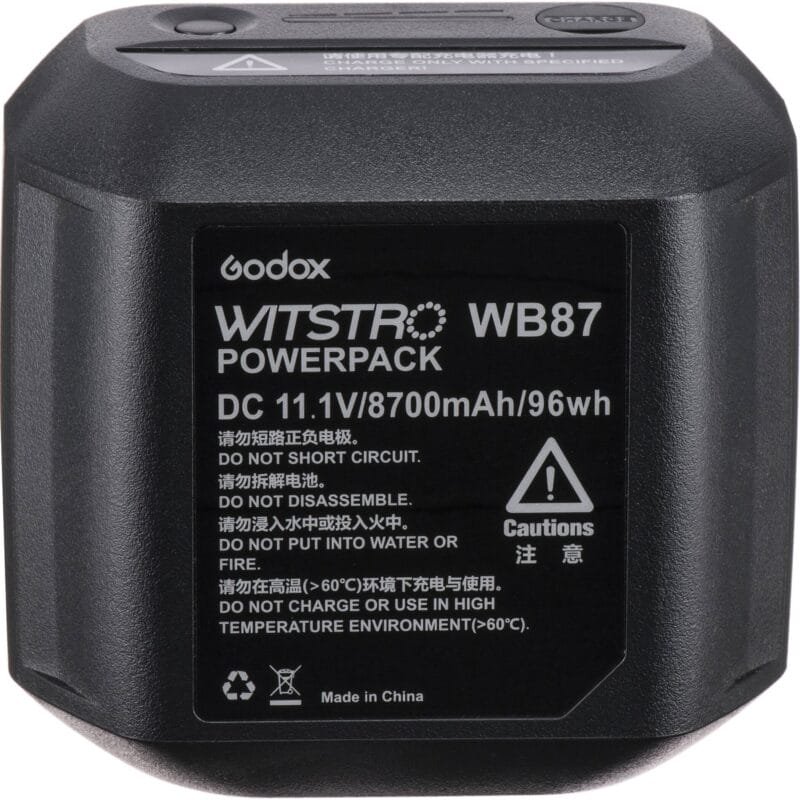 بطارية رؤوس الفلاش AD600-Series من Godox هي مصدر طاقة ليثيوم عالي السعة 11.1 فولت و 8700 مللي أمبير في الساعة متوافق مع رؤوس فلاش Godox Wistro AD600 و AD600B و AD600M و AD600BM. ستوفر البطارية المشحونة بالكامل للرؤوس 500 ومضة طاقة كاملة.