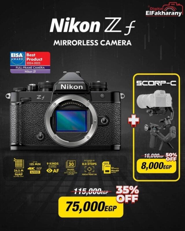 - حسّن مهاراتك في التصوير مع باقة نيكون ZF + Scorp c! تتميز هذه الكاميرا القوية بدون مرآة بتركيز تلقائي متقدم، وفيديو بدقة 4K، وتصميم خفيف الوزن. مثالية للمحترفين والهواة. اطلبها الآن من الفخراني ديجيتال!