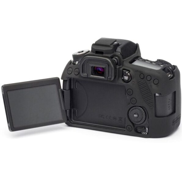 Protect your Canon EOS 80D from bumps and scratches with this black Silicone Protection Cover from easyCover. This custom-fit silicone skin provides a secure grip without compromising access to your camera’s buttons, ports, viewfinder, or screen. The protection cover features a slim design and smooth texture.