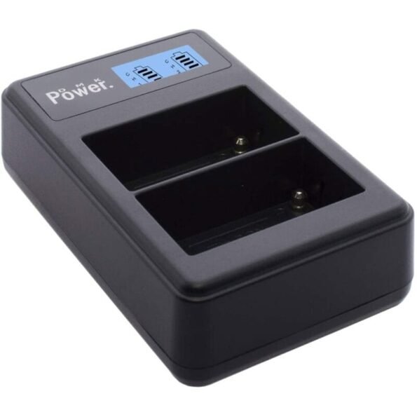 【REAL TIME CHARGING STATUS DISPLAY】The smart LED charger display the battery charging level real time to prevent your from frequent guessing how much your battery have been charged. it can charge either two batteries simultaneously or 1 battery from any USB Power source.