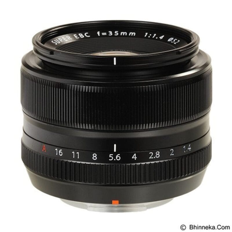 A fast and flexible normal-length prime, the XF 35mm f/1.4 R from FUJIFILM is a 53mm-equivalent lens characterized by its bright f/1.4 maximum aperture. This design benefits working in difficult lighting conditions and also affords greater control over depth of field for isolating subject matter and using selective focus techniques. The optical design employs one aspherical element, which reduces distortion and spherical aberrations in order to achieve higher sharpness and accurate rendering. A Super EBC coating is also featured, which reduces flare and ghosting for improved contrast and color fidelity.