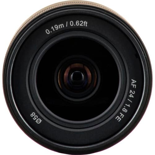 This 24mm f/1.8 lens is designed for full-frame format Sony E-mount mirrorless cameras and provides a 36mm equivalent focal length when used on APS-C-format cameras.