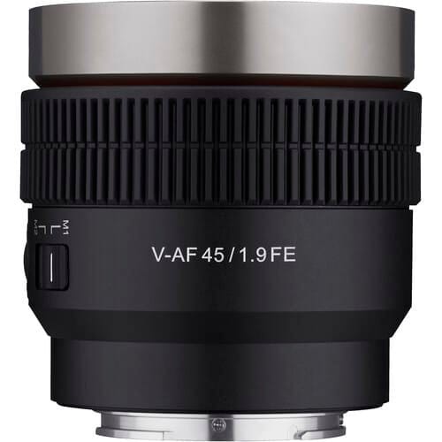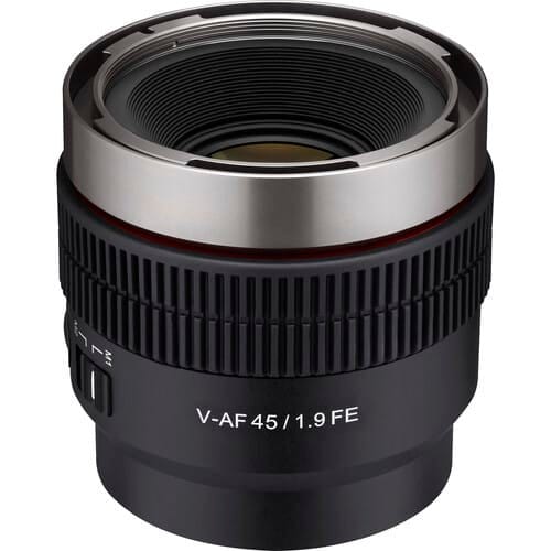 Add a wider, ultralightweight, ultracompact cinema lens to your kit with the Cine V-AF 45mm T1.9 FE Lens from Samyang. This Sony E-mount lens covers up to 8K full-frame sensors and features a multicoating to protect the lens from glare and a 9-blade iris that provides a soft, natural bokeh and a dramatic cinema look. Its autofocus function makes focusing easy when using the lens on a gimbal rig or a drone, and it features a switch that can save your focus settings when switching between manual and autofocus. This V-AF series lens also features tally LEDs on the front and rear of the lens, enabling you to easily see whether the camera is recording. Each lens in the series has the same form factor with a common center of gravity, making them easy to swap out without reconfiguring or rebalancing your rig.