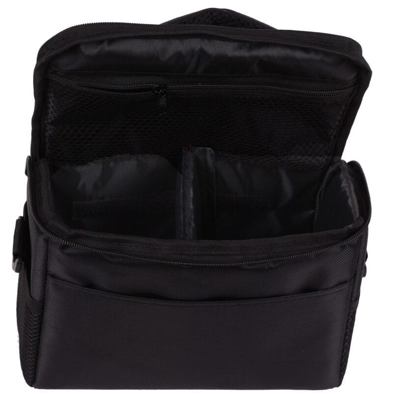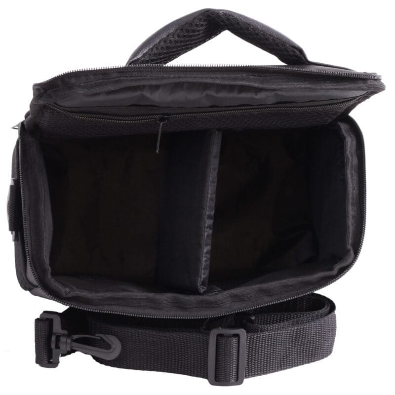 Store and protect your DSLR camera with 1-2 lenses and assorted accessories in this black