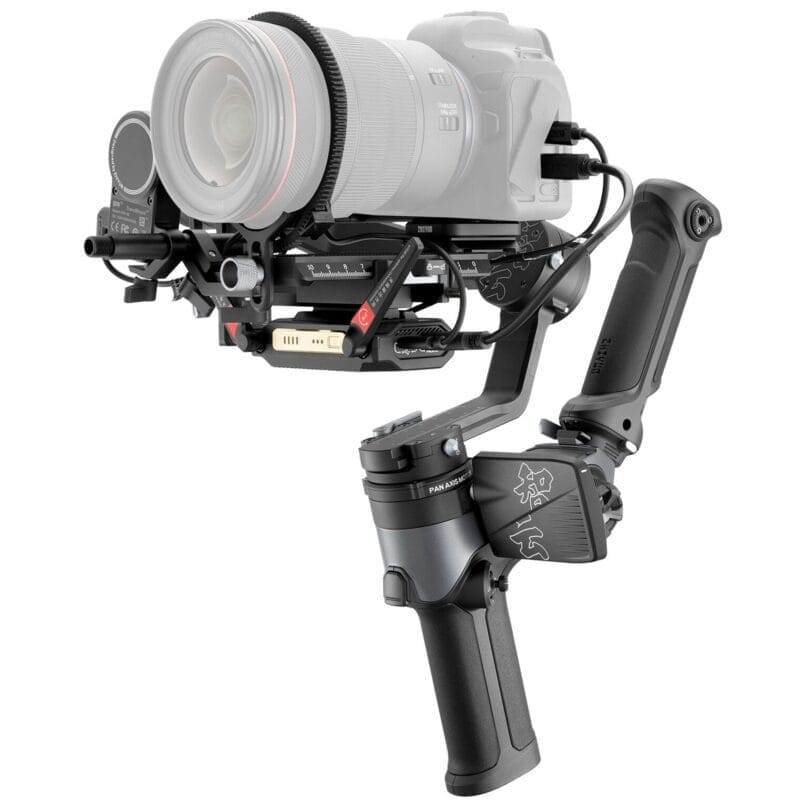 The Zhiyun-Tech WEEBILL-2 Pro Kit includes a wireless image transmitter and a focus/zoom motor, together allowing for a highly comprehensive on-set workflow. It also comes with an adjustable sling grip handle for underslung mode and a fabric carry case. The sling grip secures around the main handgrip of the gimbal and can be tilt-adjusted for optimal comfort in varying low-angle, underslung shots. It can also be used as an additional handgrip for all other operating modes.