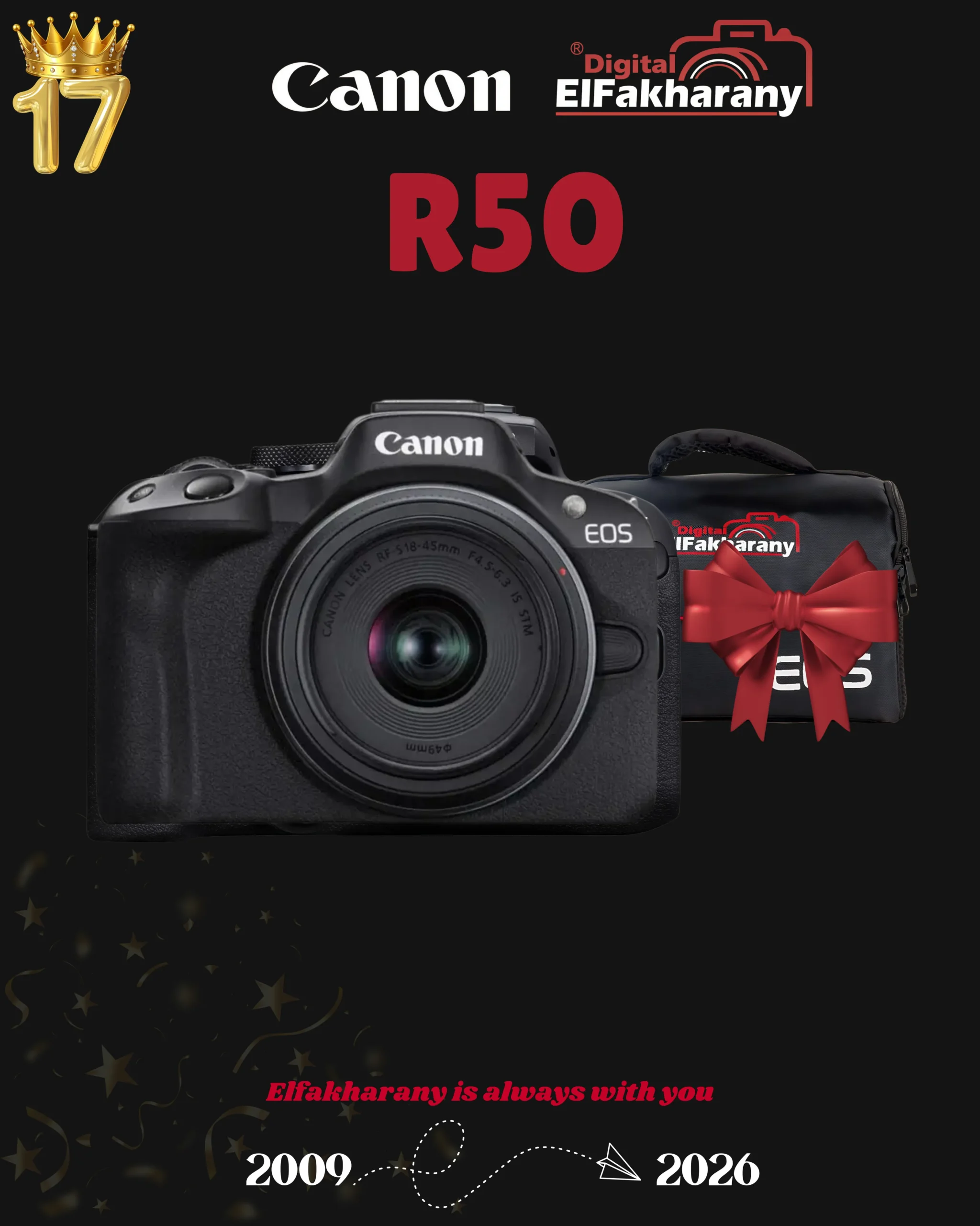 - The Canon EOS R50 is a powerful mirrorless camera with an RF-S18-45mm f/4.5-6.3 IS STM lens, perfect for vlogging, travel, and everyday photography. It features 4K video, fast autofocus, and a flip-out touchscreen for easy shooting.