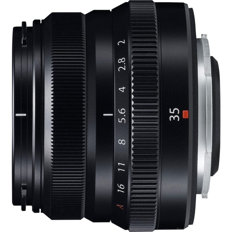 the black XF 35mm f/2 R WR from FUJIFILM is an elegant normal-length prime featuring a compact profile and apt image quality. Two aspherical elements are used in the optical design to reduce distortion and spherical aberrations in order to produce greater sharpness and accurate rendering.