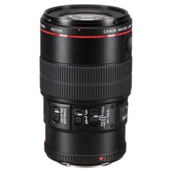 The EF 100mm f/2.8L Macro IS USM Lens from Canon is the L-series version of Canon’s popular 100mm Macro lens. As an L-series lens it offers the utmost in optical construction, including ultra-low dispersion lens elements and moisture and dustproof seal structure on the barrel. Its 100mm focal length is effective for portraiture and other telephoto applications and as a macro lens with 1:1 magnification and a 12″ minimum focus distance, it is ideal for life-size close-up imaging.