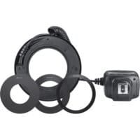 Compatible with DSLR cameras with a hot shoe, the ML-150 II Macro Ring Flash from Godox illuminates your subject with soft, nearly shadowless light that reveals every detail. The ring light consists of two components: a controller, which slips into your camera’s hot shoe, and the ring flash, which mounts on your lens. Godox includes 49,