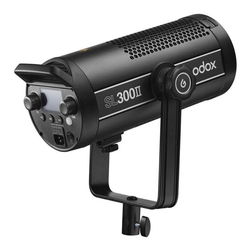 he Godox SL300II LED Video Light is a daylight-balanced 300W LED monolite-style fixture suitable for broadcasting, cinematography, online streaming, and other video applications. Dimming settings range from 0% to full power, and the light comes with a reflector.