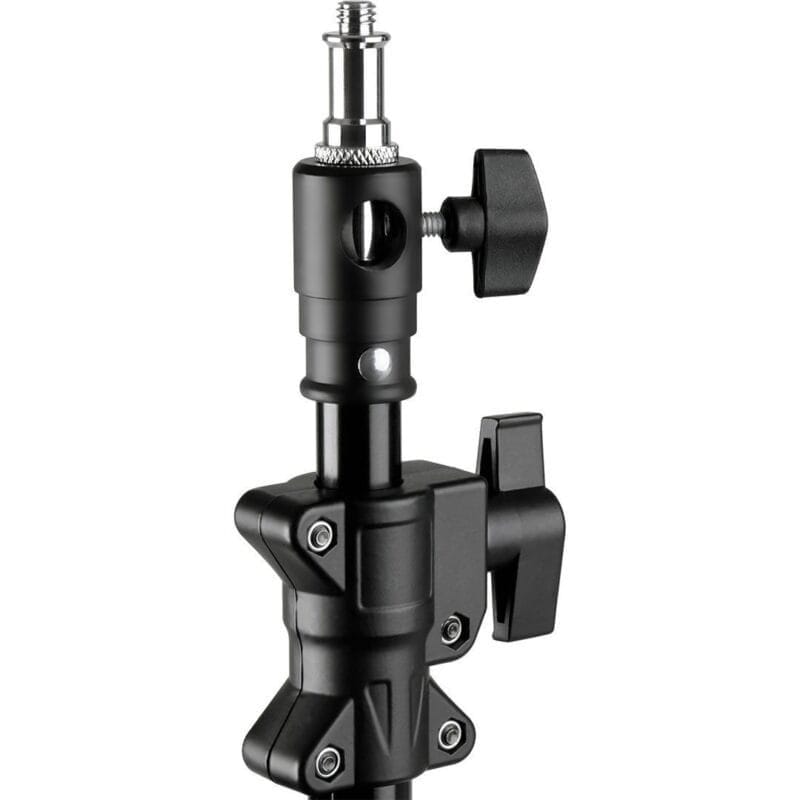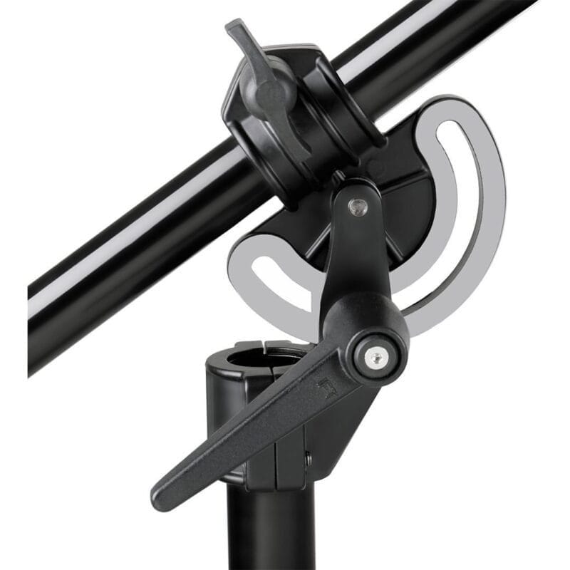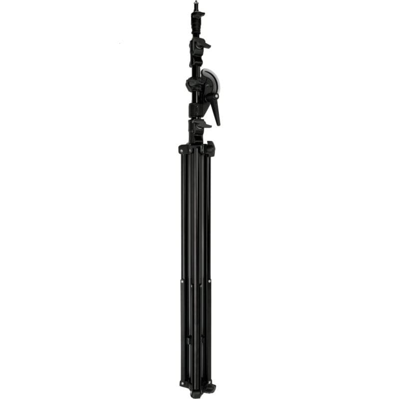 The Impact Combo Boom Stand is a clever lighting support solution that provides you with a strong 12.95′ stand with a 19.8 lb load capacity when used in the traditional way, or a 7′ boom that supports 4.4 lb when extended to 60″, and 3 lb when fully extended. The legs feature heavy-duty bracing and a wide footprint of 43″ for extra stability. The black anodized aluminum Combo Boom Stand ships with a 5/8″ reversible spigot and an empty Cordura nylon sandbag counterweight capable of holding 15 lb of ballast.