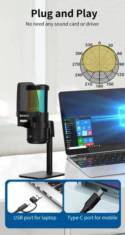 Elevate your audio quality with the JMARY MC-PW13 USB Microphone, a professional-grade plug-and-play solution designed for content creators, streamers, and remote professionals. Engineered for crystal-clear voice capture, this microphone delivers studio-quality sound with effortless setup.