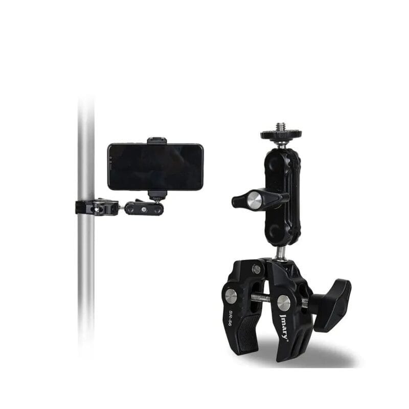 • The Jmary SR-56 Super Clamp is a robust mounting solution for cameras, lights, and studio equipment. With a 360° swivel and quick-release lever, it ensures secure, flexible positioning. Ideal for photographers, videographers, and content creators.